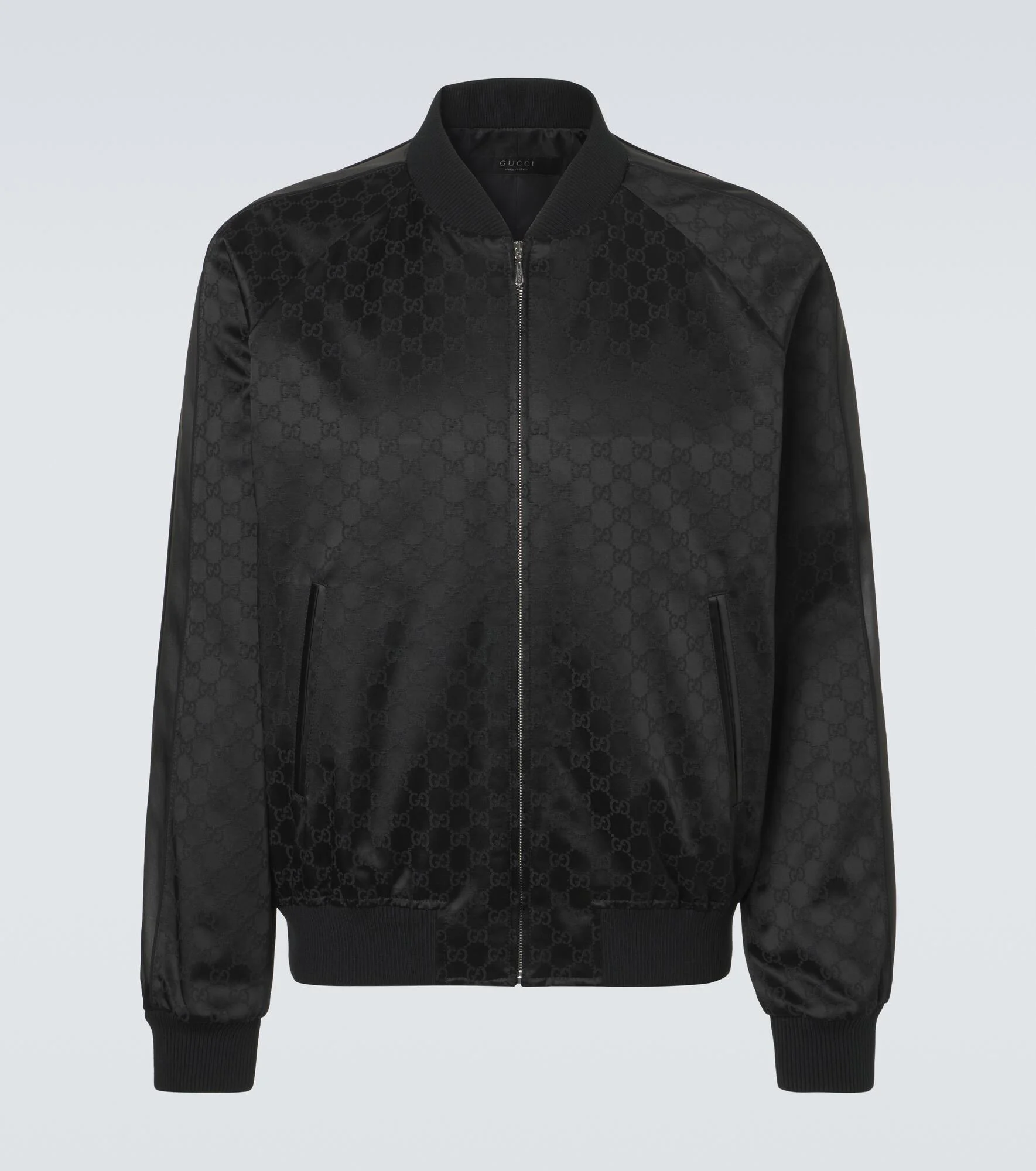 Part of Gucci's La Famiglia collection, this zip-up jacket is crafted from a lustrous cotton-blend satin. The design is decorated all over with tonal GG detailing and fitted with ribbed trims at the neck, hem, and cuffs. Product Details - Material: 52% cotton, 45% acetate, 3% elastane - Care instructions: dry clean - Made in Italy - Color: black - Designer color name: Black - Details: 52% cotton, 45% acetate, 3% elastane - Trim: 96% wool, 4% elastane - Lining: 100% viscose - Pocket lining: 100% cotton - Cuff: ribbed - Pockets: jetted, internal pockets - Closure: zipped front - Hem: ribbed - Item number: P01151308 Size & Fit - True to size - Straight fit - Elasticated hem - Non-stretchy fabric - Falls to the hip - Height of model is 187cm-73.5" and wears a size 50