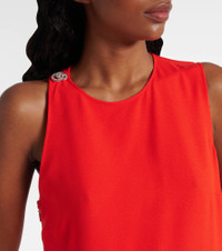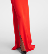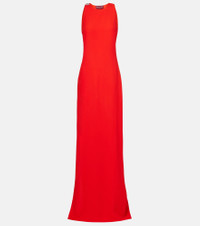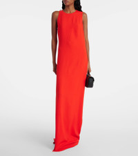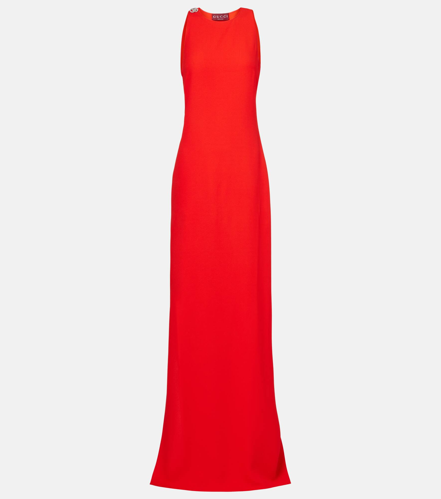 This crepe gown from Gucci, crafted in Italy, is the essence of “less is more.” It features a sleek, round-neck, sleeveless design, and a sparkling crystal Double G detail on the shoulder with a hidden zip closure. Product Details - Material: 53% acetate, 47% viscose - Care instructions: dry clean - Made in Italy - Designer color name: Vibrant Orange - Item color: orange - Closure: invisible zipper - Item number: P01052677 Size & Fit - True to size - Low back - Straight fit - Non-stretchy fabric - The model seen in the picture is 178cm-5'10" and wearing a size IT 40