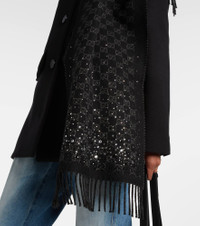 Bring a dose of sparkle to seasonal looks with this scarf from Gucci. Knitted from pure wool for guaranteed warmth, the design showcases the house's GG motif and crystal embellishments. Product Details - Material: 100% wool - Care instructions: dry clean - Made in Italy - Designer color name: Black/Medium Grey - Item color: black - Item number: P01118072 Size & Fit - Length 190cm-75" - Width 33cm-13" - Length of fringe 7.5cm-3"