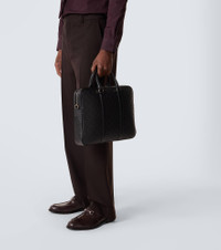 Crafted from debossed leather, the GG Emblem briefcase from Gucci reinterprets the timeless motif with a modern approach. The accessory features a detachable shoulder strap and two structured top handles, fastened by a strap featuring the signature Web Stripe. Product Details - Material: leather - Lining: fabric - Made in Italy - Designer color name: Blk/Blk/Blk/Vrv - Item color: black - Top handles, Detachable, adjustable shoulder strap - Internal details: internal slot pocket, internal zipped pocket - Closure: two-way zipped top - Hardware color: silver - Item number: P01124347 Size & Fit - Height 28cm-11" - Width 37cm-14.5" - Depth 6cm-2.5" - Length of handles 33cm-13" - Adjustable shoulder strap - Min. length shoulder strap 85cm-33.5" - Max. length shoulder strap 144cm-56.5"
