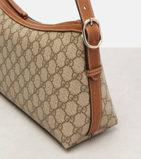 The GG Emblem Medium shoulder bag is crafted from brand-signature fabric with leather trims and an iconic Web Stripe lining. A historic interpretation of founder Guccio Gucci's initials, GG Supreme canvas is key at the house of Gucci. Product Details - Material: fabric, leather - Lining: fabric - Made in Italy - Designer color name: B.Ebony/Sundial - Item color: brown, beige - Closure: zipped top - Internal details: internal zipped pocket - Item number: P01095573 Size & Fit - Height 18,5cm-7.5" - Width 29cm-11.5" - Depth 9,5cm-3.5" - Length of handles 62cm-24.5"