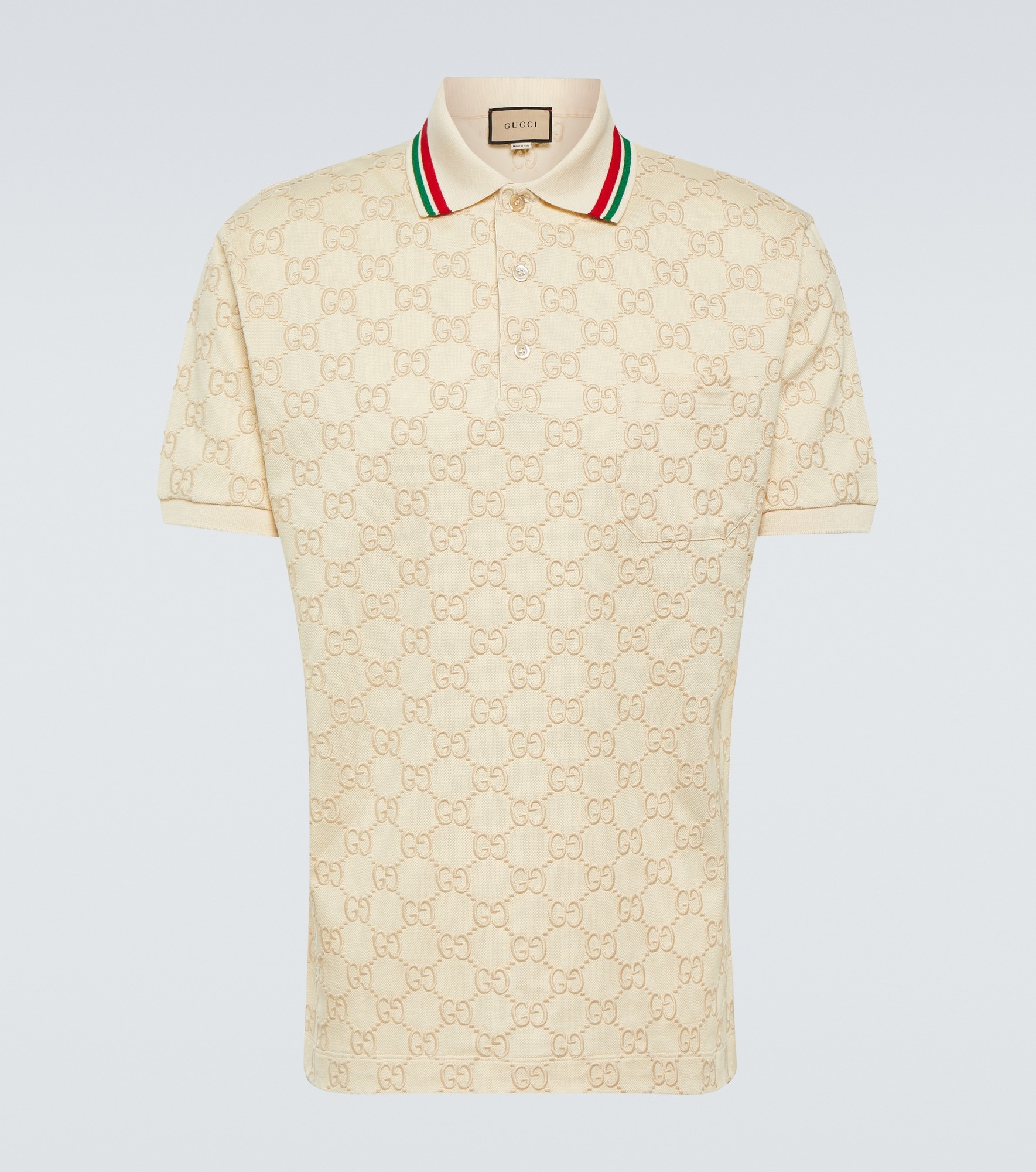 This polo top is defined by its striking embroidered GG motif. The versatile style features a Web Stripe-trimmed collar, a buttoned half-placket, and a patch pocket. Product Details - Made in Italy - Closure: partially buttoned front - Material: 98% cotton, 2% elastane - Care instructions: dry clean - Item number: P00815730 Size & Fit - True to size - Designed for a loose fit - Mid-weight material - Falls below the hip - The model in the picture is 185cm-6'1" and wearing a size M