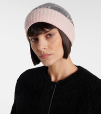 This beanie from Gucci blends warmth and comfort with elevated, luxe style. Crafted in Italy from jacquard cashmere, the accessory showcases the iconic GG logo and a contrasting ribbed-knit cuff. Product Details - Material: 100% cashmere - Care instructions: dry clean - Made in Italy - Designer color name: Cloud/Pink - Item color: gray, pink - Item number: P01054701 Size & Fit - Circumference size S 56cm-22" - Circumference size M 57cm-22.5" - Circumference size L 58cm-23"