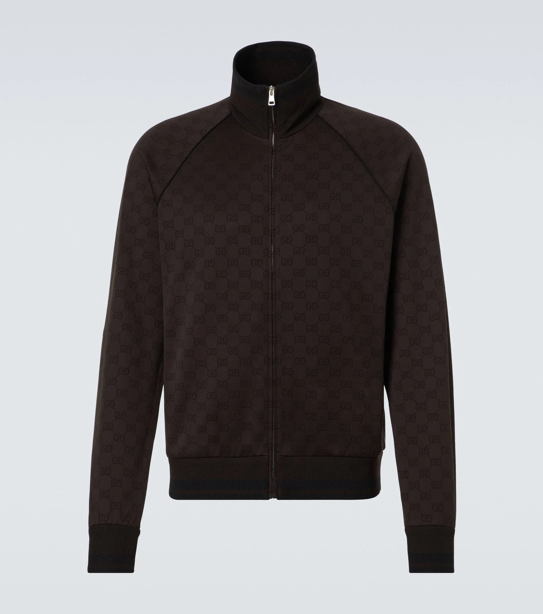 GG jacquard is a quintessentially Gucci fabric that's been part of the house's codes since the early '70s. This track jacket showcases the iconic pattern and features ribbed trims and a zip-up front. Product Details - Material: 75% polyamide, 25% cotton - Care instructions: hand wash warm - Made in Italy - Designer color name: Chocolate Praline - Item color: brown - Pocket lining: 100% cotton - Details: 55% polyester, 45% cotton - Trim: 87% polyester, 9% polyamide, 4% elastane - Cuff: ribbed - Closure: zipped front - Hem: ribbed - Item number: P01124236 Size & Fit - True to size - For a looser fit, we recommend taking one size up - Slim fit - Elasticated hem - Non-stretchy fabric - Slightly cropped - Height of model is 190cm-75" and wears a size L