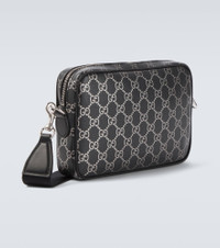 Gucci reinterprets the past in order to create something that is uniquely modern. Crafted from smooth, durable material, this boxy shoulder bag is entirely covered in a silvery print of the iconic GG motif. Product Details - Material: fabric - Lining: fabric - Made in Italy - Color: black - Designer color name: Black Silver/BLK/BLK - Item color: black, silver - Trim: leather - Hardware color: silver - Closure: zipped top - Detachable wrist strap - Detachable shoulder strap - Internal details: single compartment, internal zipped pocket - Item number: P01124405 Size & Fit - Height 15cm-6" - Width 23,5cm-9.5" - Depth 4cm-1.5" - Adjustable shoulder strap - Min. length shoulder strap 84cm-33" - Max. length shoulder strap 137cm-54" - Length of wrist strap 44cm-17.5"
