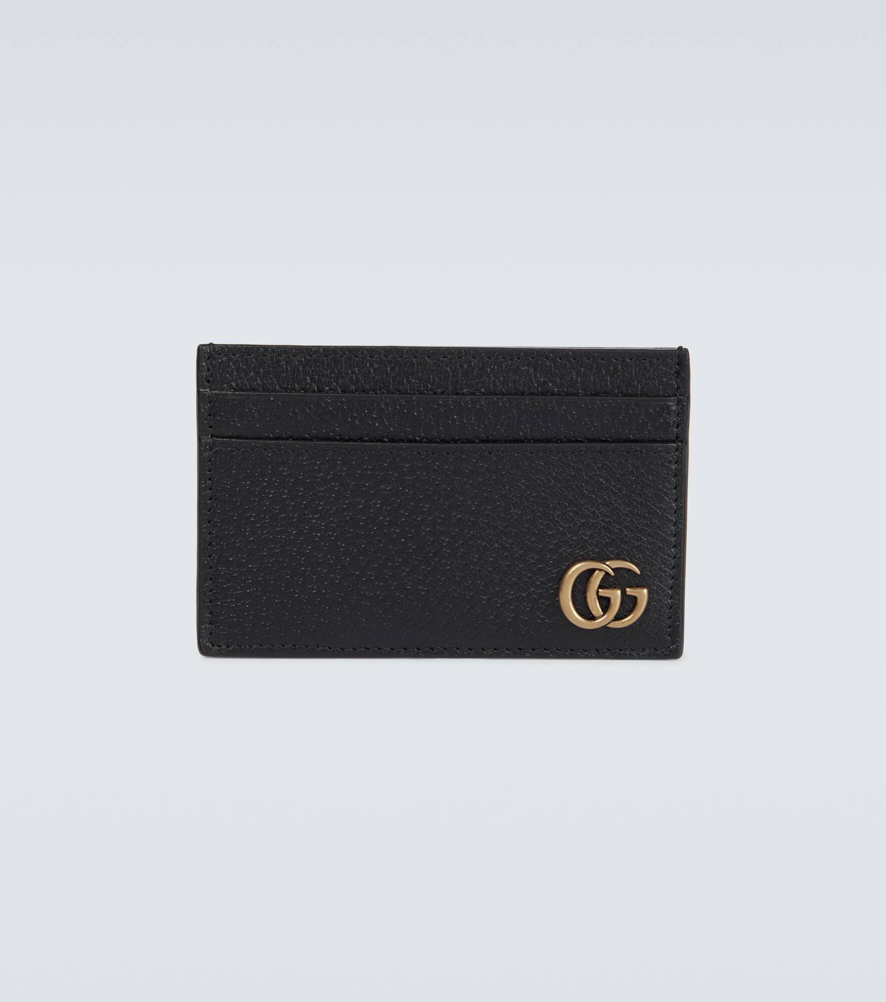 Crafted from leather in black, this GG Marmont Gucci cardholder features four card slots and is finished with the label's GG logo in gold-tone at the front. Product Details - Color of fastening: gold - Internal details: leather lining - Material: calf leather - Comes with dust bag - Made in Italy - Item number: P00583953 Size & Fit - Height 7cm-3" - Width 11cm-4.5"