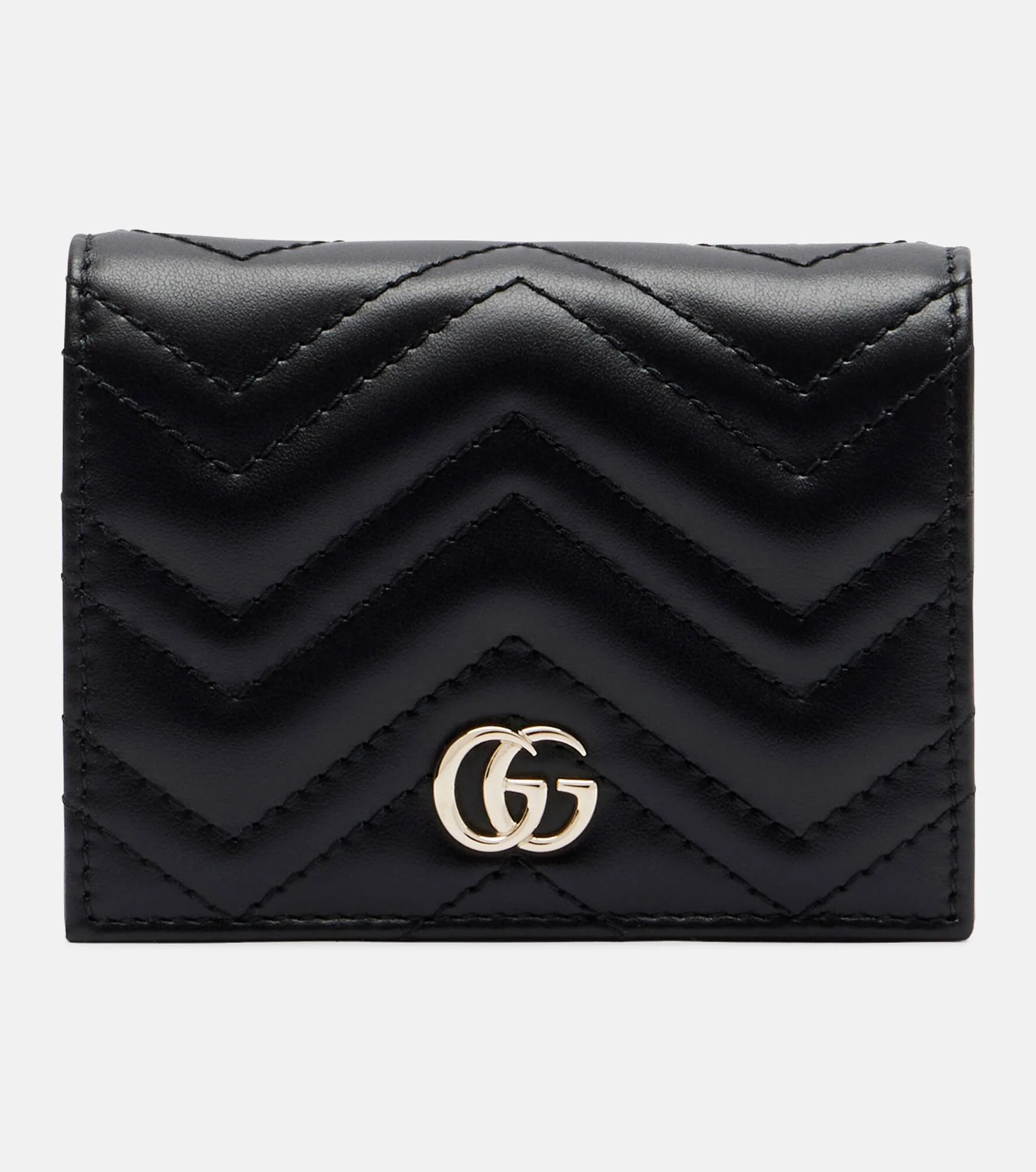 This GG Marmont wallet from Gucci is crafted from leather and defined by distinct quilted stitching. The Small-sized design is fitted with multiple compartments, showcasing signature gold-toned Double G hardware on the front. Product Details - Material: lamb leather - Lining: leather - Made in Italy - Color: black - Designer color name: Black - Item color: black - Closure: snap-buttoned fastening - Internal details: Card slots, coin pocket - Includes: dust bag, box - Item number: P01137817 Size & Fit - Width 11cm-4.5" - Depth 8,5cm-3.5"