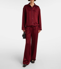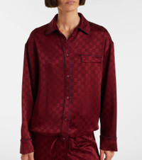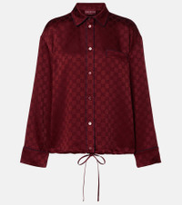 An iconic name in global fashion, Gucci was founded in Florence in 1921. This long-sleeved shirt features a classic point collar, the signature GG motif, a drawstring at the hem, and a buttoned placket. Product Details - Material: 55% viscose, 45% acetate - Care instructions: dry clean - Made in Italy - Designer color name: Rosso Ancora/Mix - Item color: burgundy - Closure: buttoned placket - Collar: classic (Straight point) - Contains non-textile parts of animal origin - Drawstring at the hem for adjustable fit - Item number: P01052915 Size & Fit - True to size - Dropped shoulders - Designed for a loose fit - Adjustable hem - Non-stretchy fabric - Falls to the hip - The model seen in the picture is 178cm-5'10" and wearing a size IT 40