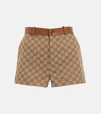 These Gucci shorts combine retro flair with modern sophistication. Made from beige GG Supreme jacquard canvas, the slim-fitting design is anchored with a camel-brown leather waistband and logo button. Don it with the coordinating jacket. Product Details - Made in Italy - Material: 30% polyester, 70% cotton - Belt loops - Designer color name: Camel/Mix - Closure: zipper fly, button fastening - Pockets: side slit pockets, zipped pockets - Details: 100% lamb leather - Care instructions: dry clean - Item number: P00614035 Size & Fit - Fits large to size - we recommend trying one size smaller - Mid-weight material - Straight leg - High-waisted - The model seen in the picture is 178cm-5'10" and wearing a size IT 38