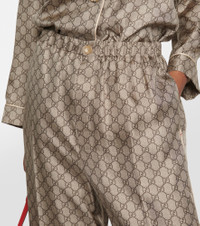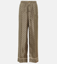 A historic interpretation of founder Guccio Gucci's initials, GG Supreme is a key fabric at the house of Gucci. It’s featured on these pants, made purely from silk and complete with wide legs and an elasticated waistband. Product Details - Pocket lining: 25% silk, 75% acetate - Details: 100% cotton - Made in Italy - Designer color name: Camel/Mix - Pockets: side slit pockets - Material: 100% silk - Care instructions: dry clean - Closure: button fastening - Item number: P00811902 Size & Fit - Fits large to size - we recommend trying one size smaller - Elasticated waist - Lightweight material - Wide-leg - High-waisted - The model seen in the picture is 178cm-5'10" and wearing a size IT 40