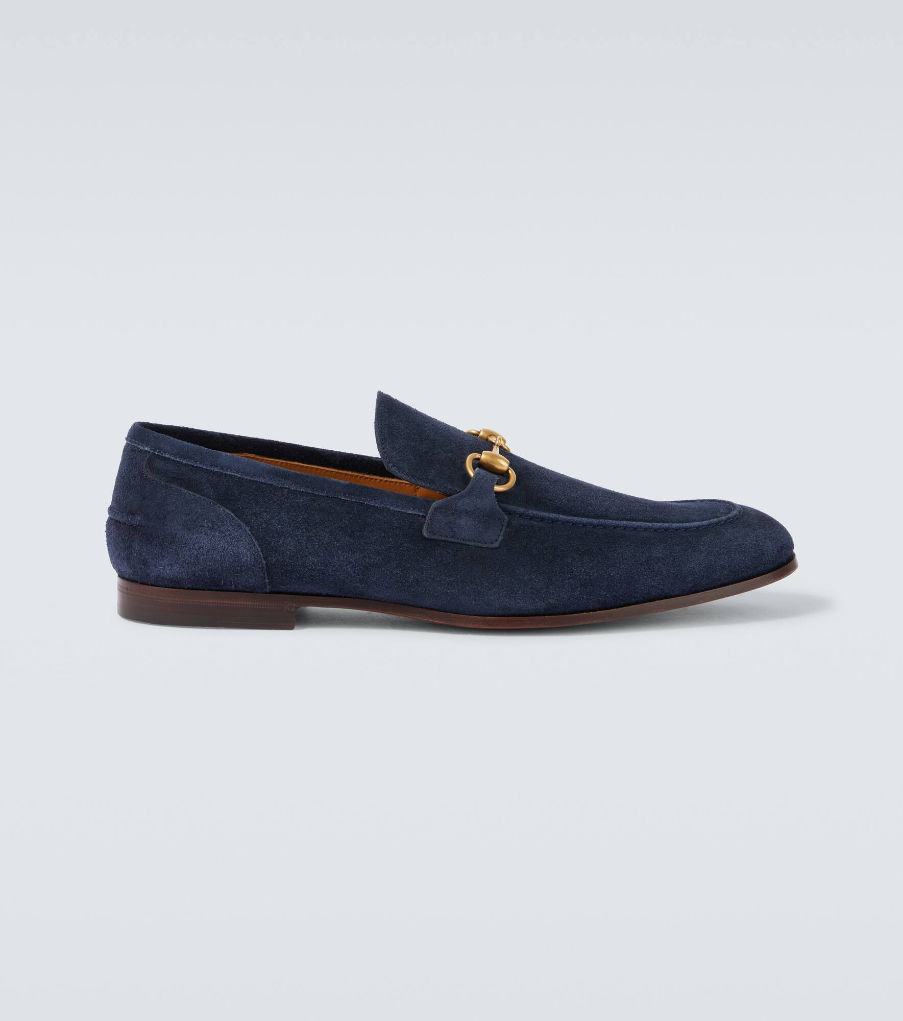 The Gucci Jordaan loafers from Gucci feature a sleek silhouette that'll transcend seasons and trends. They're expertly crafted from smooth suede and accented with the house's iconic Horsebit detailing. Product Details - Upper: leather (suede) - Lining: leather - Sole: leather insole and sole - Toe shape: almond toe - Made in Italy - Includes: shoe box - Designer color name: Blue - Item color: blue - Item number: P01089999 Size & Fit - True to size - UK sizes
