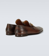 Crafted in Italy, these classic brown Gucci loafers have elongated toes and slightly lifted heels, and are embellished with gold horsebit details. Product Details - Lining: leather - Toe shape: round toe - Upper: calf leather - Sole: leather insole and sole - Made in Italy - Designer color name: Brown - Item number: P00436227 Size & Fit - True to size - Slightly narrow at the back - UK sizes
