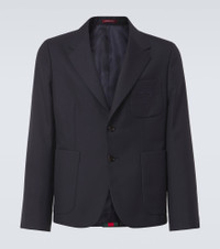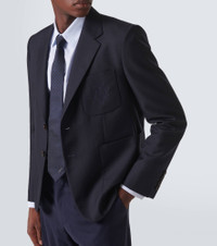 Product Details - Material: 55% polyester, 45% wool - Care instructions: dry clean - Made in Italy - Designer color name: Ink - Embroidery: 100% polyester - Trim: 100% cotton - Lining: 100% cupro - Sleeve lining: 100% cupro - Contains non-textile parts of animal origin - Closure: single-breasted (two buttons) - Pockets: patch pockets, breast pocket, internal pockets - Notched lapel - Vent: single - Regular fit - Jacket construction: soft structured - Fully lined - Item number: P00939657 Size & Fit - True to size - Slightly short sleeves - Shoulder pad inserts - Regular fit - Non-stretchy fabric - Falls to the hip - slit length 20,0cm-8" - The model in the picture is 185cm-6'1" and wearing a size IT 48