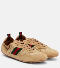 The Gucci Shift sneakers from Gucci blend the house's most iconic elements, creating a one-of-a-kind pair. Designed with an elasticated silhouette, the style is crafted from signature GG Canvas with suede trims and accented by the iconic Web Stripe. Product Details - Upper: leather (suede), fabric - Lining: fabric - Sole: leather insole, rubber sole - Toe shape: round toe - Made in Italy - Includes: dust bag, shoe box - Designer color name: Sg/Ns/Sg/Vrv/Sg/Sg/V - Item color: beige - Closure: lace-up - Item number: P01124334 Size & Fit - True to size - Slightly narrow - European sizes