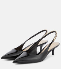 Product Details - Upper: leather - Lining: leather - Sole: leather insole and sole - Toe shape: pointed toe - Made in Italy - Includes: shoe box, dust bags - Designer color name: Nero/Nero - Closure: ankle strap - Item number: P00917814 Size & Fit - Fits slightly large to size - we recommend trying a half size smaller - European sizes - 5,5cm-2" heel (size EU 38)