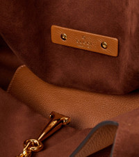 Product Details - Material: leather - Lining: fabric - Made in Italy - Designer color name: Sundial - Item color: brown - Closure: magnetic fastening - Leather shoulder strap - Hardware color: gold - Detachable zipped pouch - Item number: P01054645 Size & Fit - Height 26cm-10" - Width 44cm-17.5" - Depth 16cm-6.5" - Length of handles 42cm-16.5" - Clutch height 15,5cm-6" - Clutch width 22cm-8.5"