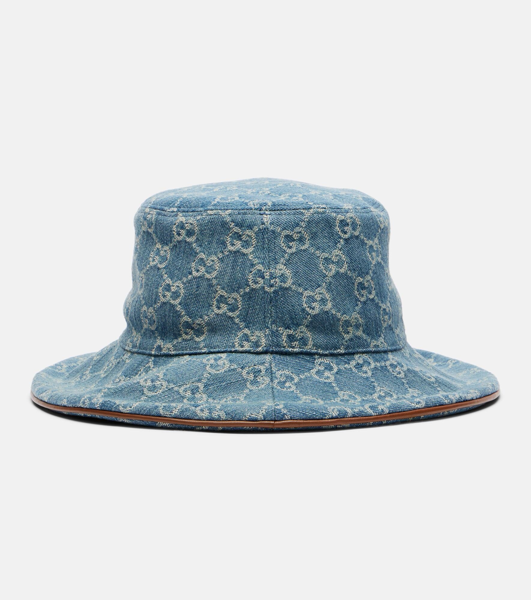 Crafted from denim, this bucket hat from Gucci showcases the signature interlocking GG symbol and the Horsebit motif. One of its most powerful emblems, the Horsebit points to the house's storied fascination with equestrian design codes. Product Details - Material: 100% cotton - Care instructions: do not wash - Made in Italy - Designer color name: Turquoise B./L.Brown - Item color: blue - Lining: 65% cotton, 35% linen - Details: 55% cotton, 45% viscose - Trim: 100% leather - Contains non-textile parts of animal origin - Item number: P01054704 Size & Fit - Circumference size S 56cm-22" - Width of brim 7cm-3"