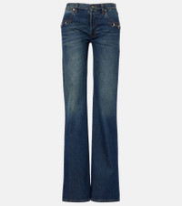 An unwavering commitment to craftsmanship and heritage sets Gucci apart. These jeans feature a straight-leg silhouette and showcase signature Horsebit details at the pockets. Product Details - Material: 100% cotton - Care instructions: dry clean - Made in Italy - Color: blue - Designer color name: Blue - Contains non-textile parts of animal origin - Details: 100% calf leather - Pocket lining: 65% polyester, 35% cotton - Belt loops - Pockets: five pockets - Closure: concealed button placket - Hardware color: silver - Item number: P01150089 Size & Fit - Fits small to size - we recommend trying one size larger - Non-stretchy fabric - Straight leg - Low-rise - The model seen in the picture is 178cm-5'10" and wearing a size 27