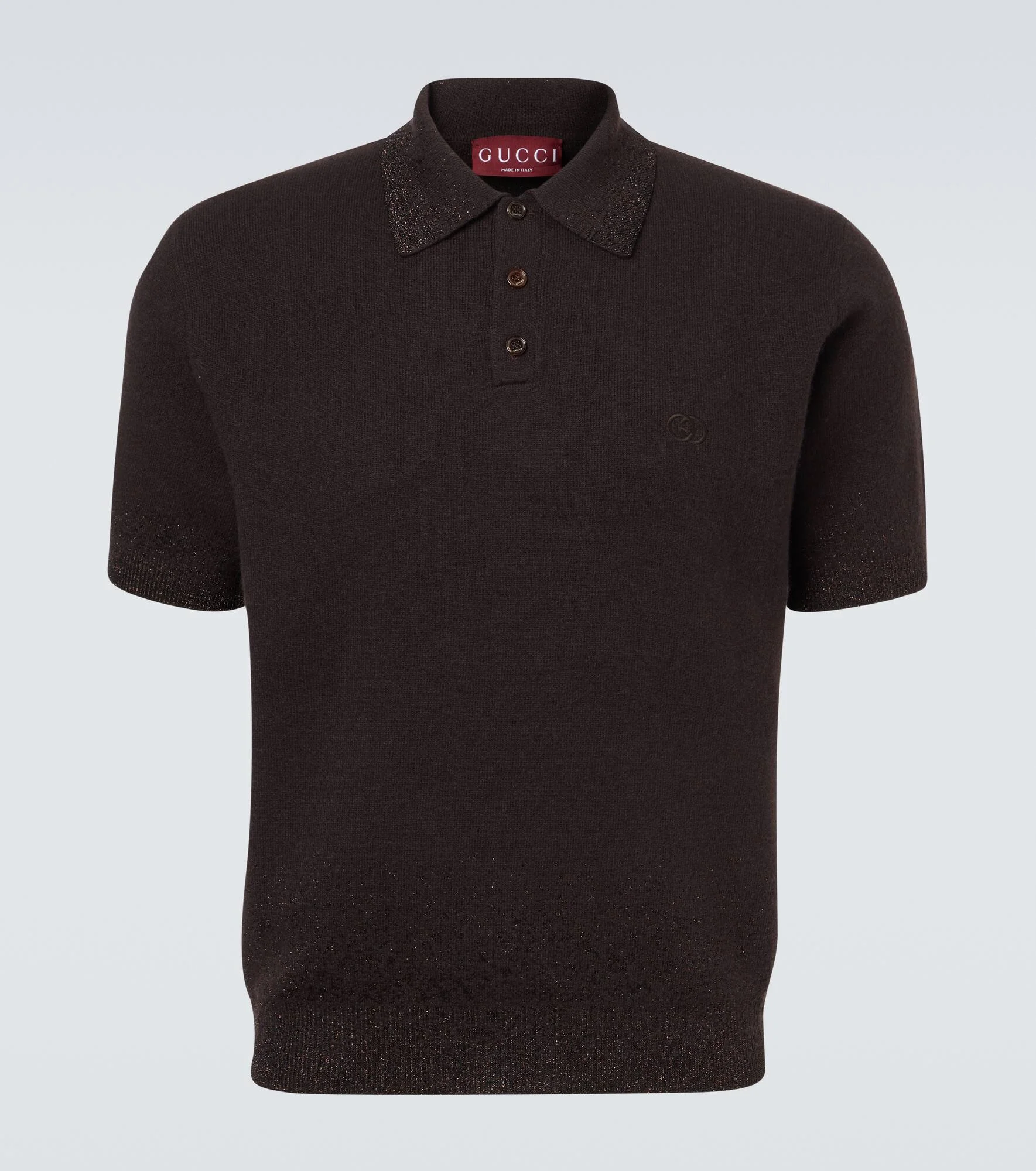Gucci's collections are both a reflection of the past and a glimpse into the future. Made from a wool blend with lame threads, this polo shirt features the brand's iconic Interlocking G logo embroidered at the heart. Product Details - Material: 81% wool, 13% viscose, 3% polyester, 3% metallic fibres - Care instructions: dry clean - Made in Italy - Designer color name: Blackish Brown/Mix - Item color: brown - Details: 41% wool, 36% viscose, 9% metallic fibres, 8% polyester, 5% polyamide, 1% elastane - Trim: 79% wool, 14% viscose, 4% metallic fibres, 3% polyester - Embroidery: 100% polyester - Contains non-textile parts of animal origin - Collar: polo collar - Closure: buttoned placket - Cuff: ribbed - Hem: ribbed - Item number: P01124230 Size & Fit - Height of model is 192cm-75.5" and wears a size L