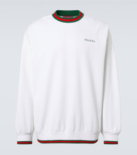 Let this sweatshirt from Gucci become a staple in your collection. Made from a soft cotton blend, the crewneck style is complete with Web detailing at the trims and subtle logo lettering at the front. Product Details - Material: 88% cotton, 12% polyester - Care instructions: machine wash cold - Made in Italy - Designer color name: White/Mix - Item color: white - Trim: 86% cotton, 10% polyamide, 4% elastane - Item number: P01050916 Size & Fit - Fits large to size - we recommend trying one size smaller - Dropped shoulders - Oversized - Non-stretchy fabric - Falls below the hip - Height of model is 190cm-75" and wears a size M