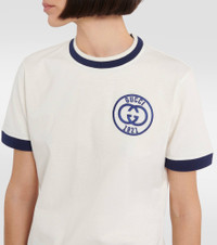 Gucci elevates activewear with this logo-embroidered T-shirt exuding retro flair. Made from cotton jersey, the off-white style features the iconic interlocking G motif and contrasting trims. Product Details - Made in Italy - Material II: 82% cotton, 17% polyamide, 1% elastane - Material: 100% cotton - Designer color name: Sunlight/Mix - Care instructions: hand wash - Item number: P00811840 Size & Fit - True to size - Straight fit - Slightly stretchy fabric - Falls to the hip - The model seen in the picture is 178cm-5'10" and wearing a size XS