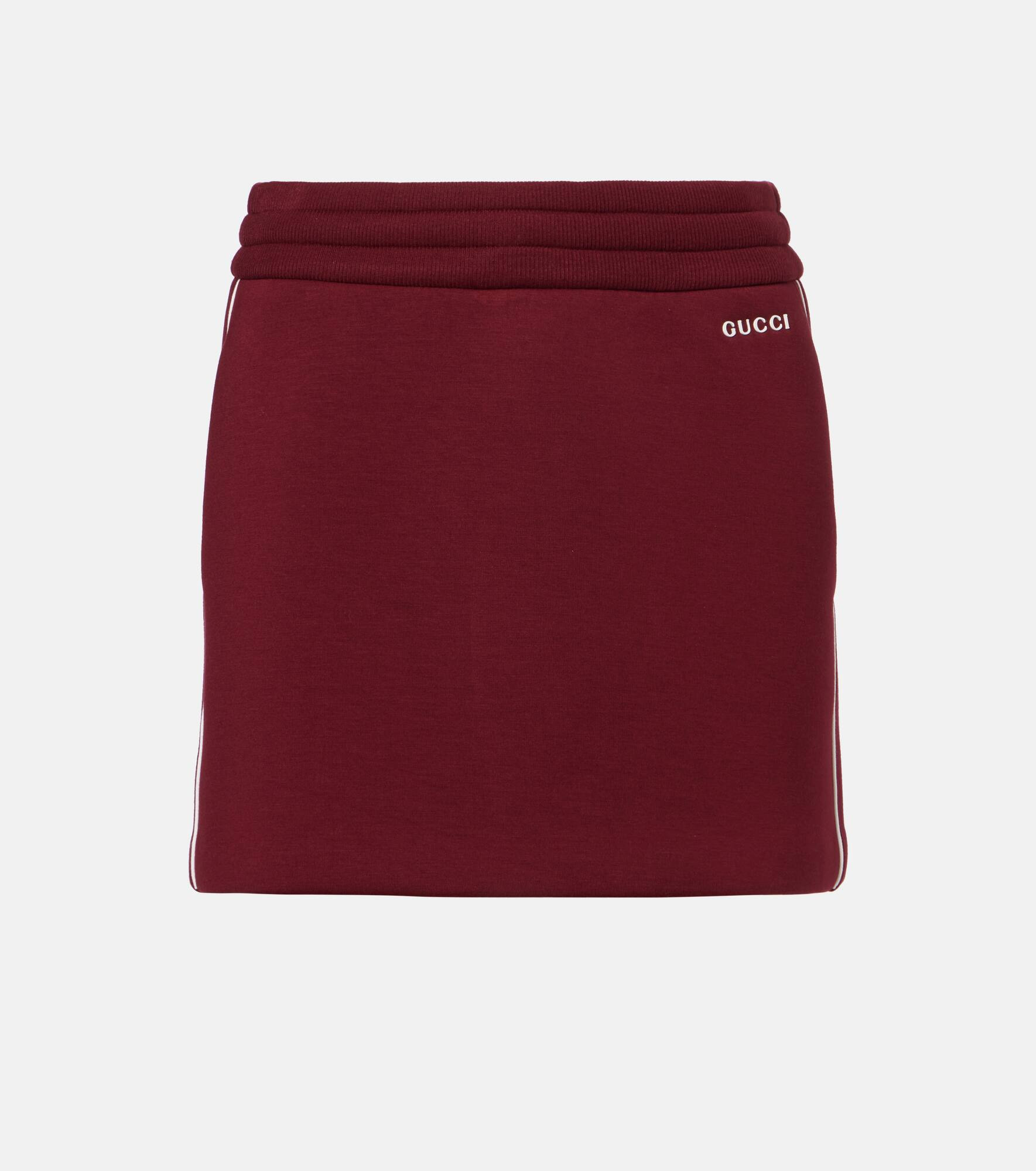 Known for its bold spirit and eclectic aesthetic, Gucci redefines modern luxury with every piece. This miniskirt showcases a logo embroidery and blends practicality with sophistication, thanks to its elasticated drawstring waistband and side slit pockets. Product Details - Material: 96% viscose, 4% elastane - Care instructions: hand wash - Made in Italy - Designer color name: Rosso Ancora/Mix - Item color: burgundy - Details: 100% metal - Trim: 100% cotton - Elasticated drawstring waist - Pockets: side slit pockets - Item number: P01052701 Size & Fit - True to size - Elasticated waist - Adjustable at the waist - Slightly stretchy fabric - High-waisted - The model seen in the picture is 178cm-5'10" and wearing a size XS