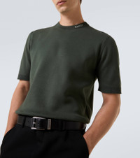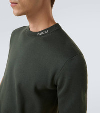 Gucci's designs perfectly balance a reverence for the past with a bold vision for the future. This T-shirt is made from silk and cotton and features a classic crewneck finished with a logo intarsia detail. Product Details - Material: 44% silk, 37% cotton, 18% polyamide, 1% elastane - Care instructions: dry clean - Made in Italy - Designer color name: Military Green/White - Item color: green - Collar: crewneck - Cuff: ribbed - Hem: ribbed - Item number: P01051026 Size & Fit - True to size - Straight fit - Stretchy fabric - Falls to the hip - Height of model is 189cm-74.5" and wears a size L