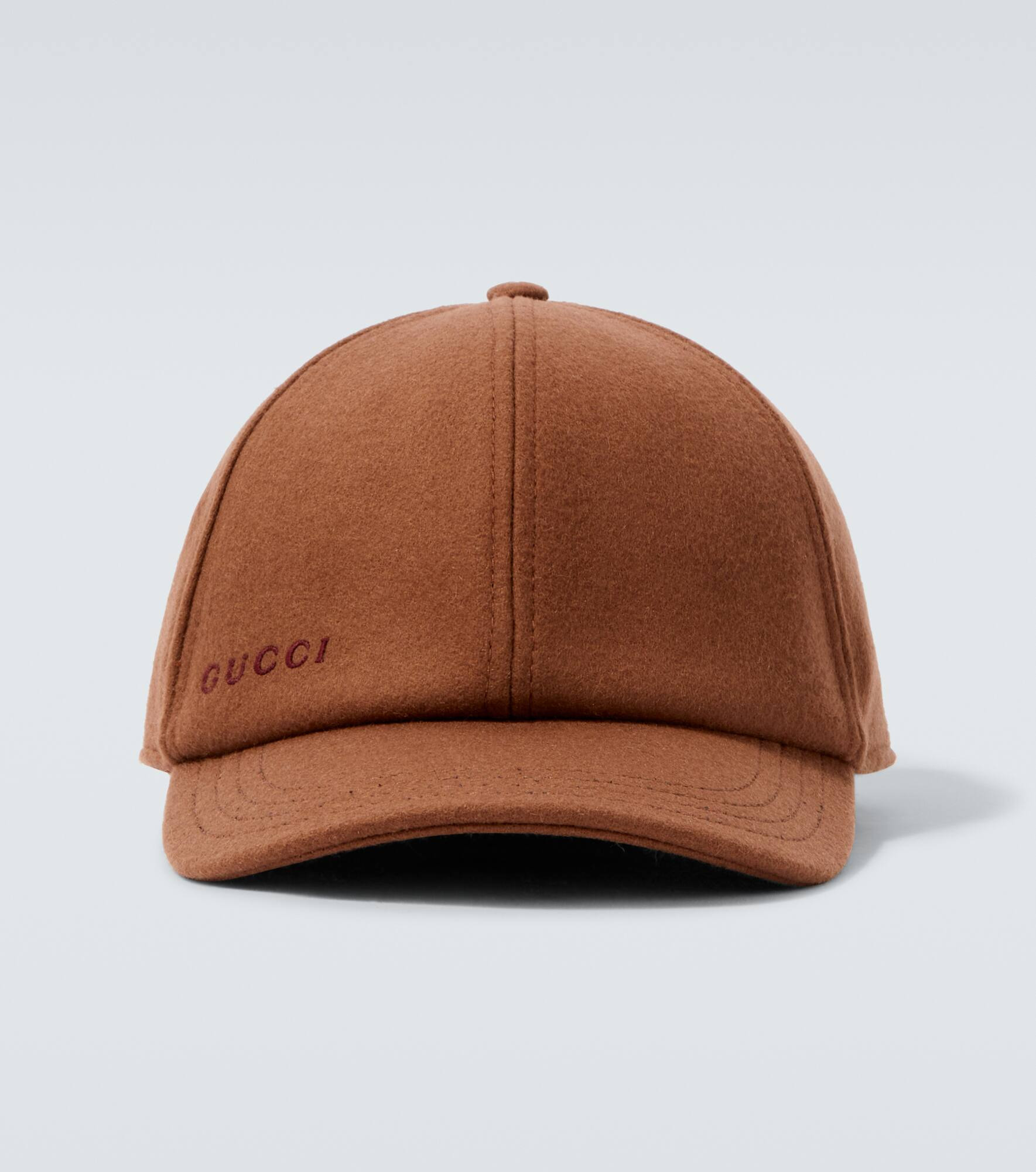 This Gucci baseball cap brings a distinctive touch to casualwear with its tonal logo embroidery at the front. The design is finished with an adjustable strap that showcases the signature green and red Web stripe. Product Details - Material: 100% wool - Care instructions: specialist clean - Made in Italy - Designer color name: Brown/Dark Green - Item color: brown - Material II: 55% cotton, 45% viscose - Details: 56% cotton, 44% viscose - Includes: dust bag - Item number: P01078846 Size & Fit - Adjustable size - Circumference size M 58cm-23" - Length of visor 7cm-3"