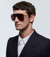 Gucci's mask sunglasses fuse sport detailing with high-octane glamour. The pair boast sleek golden frames, accented with cubic logo-lettered detailing on the temples for a refined finish. Product Details - Frame material: acetate - Frame color: gold - Lens filter category 3 - Lens color: black - Made in Italy - Includes: hard case, cleaning cloth - Designer color name: Gold-Gold-Brown - Item number: P00873375 Size & Fit - Lens width: 99mm-3.9" - Bridge size: 1mm-0.05" - Earpiece length: 135mm-5.3"