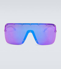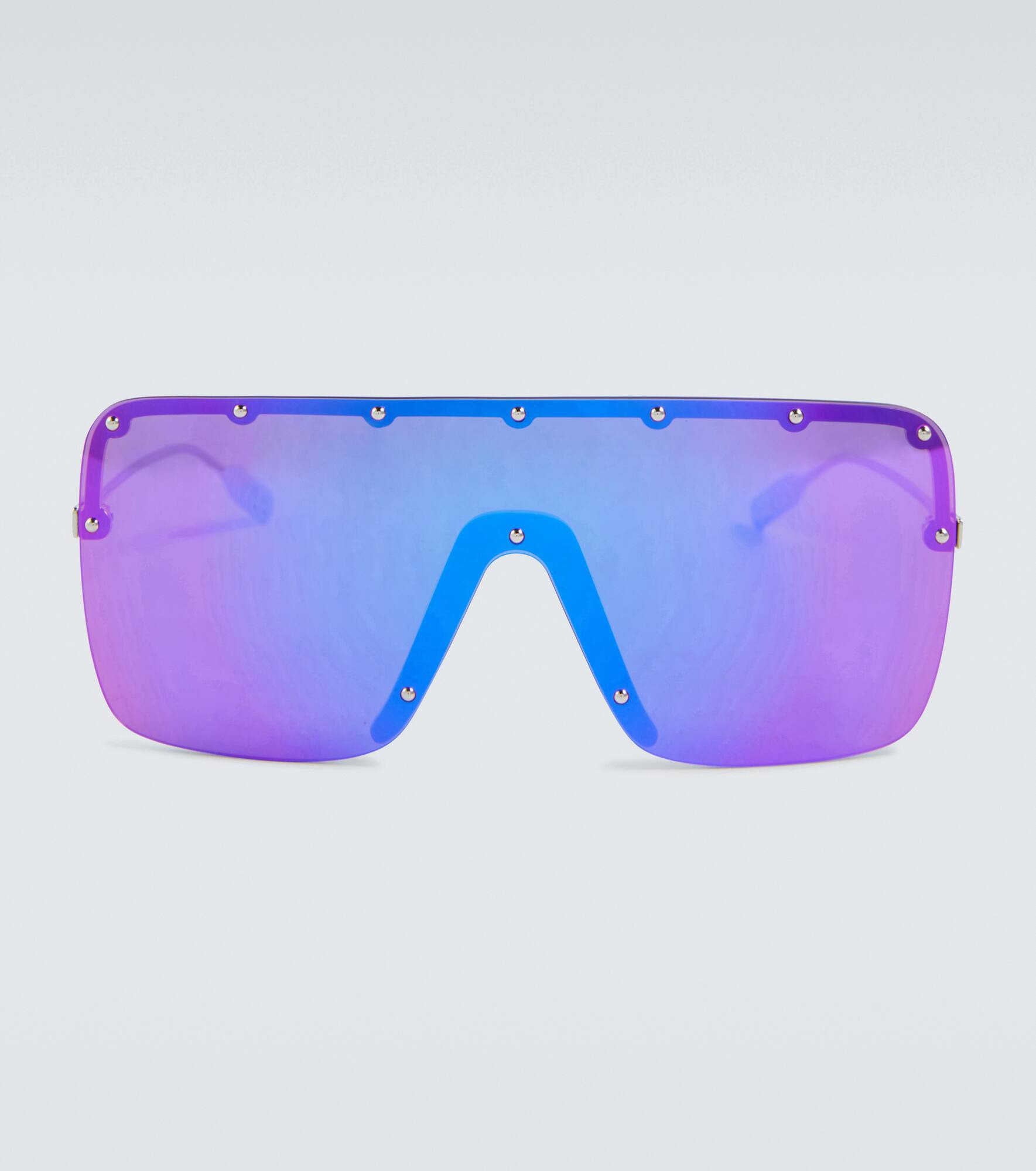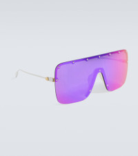 Made for mountain destinations, these burgundy and pink Mask sunglasses from Gucci are framed with metal studs. Product Details - Frame color: silver - Frame material: metal - Lens color: brown - comes with cleaning cloth - The color of the case may vary, comes in a hard case - Lens filter category 3 - Made in Italy - Item number: P00689078 Size & Fit - Lens width: 99mm-3.9" - Bridge size: 1mm-0.05" - Earpiece length: 140mm-5.5"