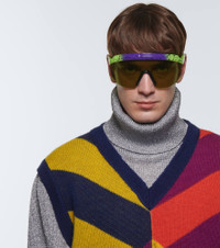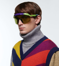 Gucci's penchant for proportion is spotlighted by this ski goggle-inspired style. Made in Japan for the Spring/Summer 2023 collection, these sunglasses feature an injected acetate frame and offer 100% UVA/UVB protection. Product Details - Frame color: multicoloured - Frame material: acetate - Lens color: green - comes with cleaning cloth - comes in a hard case - Lens filter category 2 - Made in Japan - Item number: P00805412 Size & Fit - Lens width: 99mm-3.9" - Bridge size: 1mm-0.05" - Earpiece length: 130mm-5.1"
