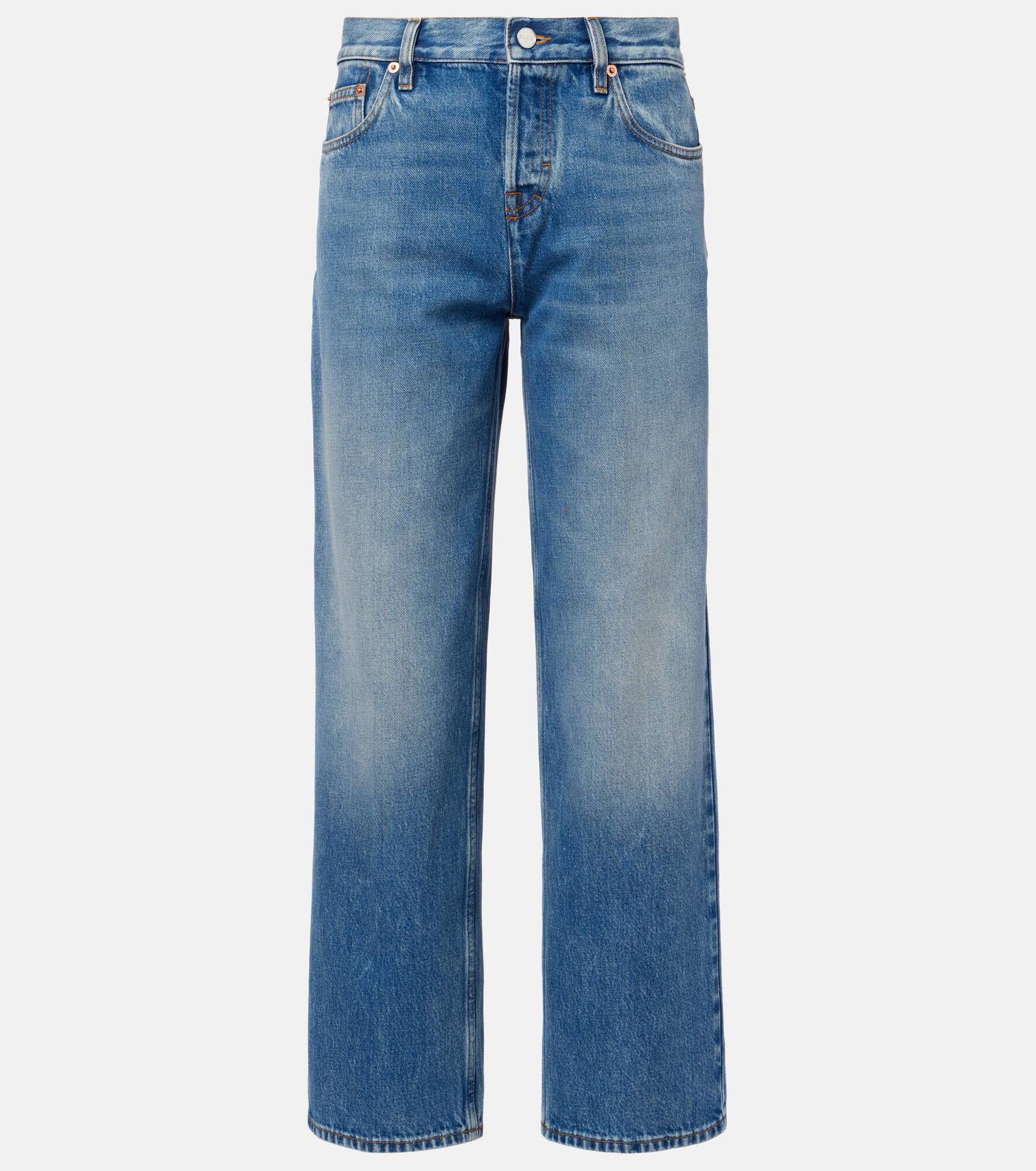 Gucci's designs balance timeless quality with a bold vision for the future. These straight jeans feature a mid-rise waistline and stand out for their washed-out finish. Product Details - Material: 100% cotton - Care instructions: dry clean - Made in Italy - Designer color name: Light Blue - Item color: blue - Pocket lining: 65% polyester, 35% cotton - Details: 100% calf leather - Contains non-textile parts of animal origin - Item number: P01052643 Size & Fit - Fits small to size - we recommend trying two sizes larger - Tight fit at thighs - Non-stretchy fabric - Straight leg - Mid-rise - The model seen in the picture is 178cm-5'10" and wearing a size 28