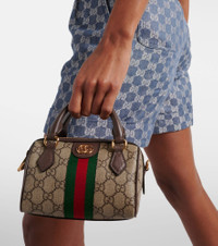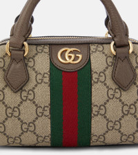 Product Details - Material: fabric - Lining: fabric - Made in Italy - Designer color name: B.Eb/N.Acero/Vrv - Trim: leather - Closure: zipped top - Top handles, Detachable shoulder strap - Comes with a box - Comes with dust bag - Item number: P00918172 Size & Fit - Height 11cm-4.5" - Width 16,5cm-6.5" - Max. depth 9cm-3.5" - Length of handles 20cm-8" - Min. length shoulder strap 117cm-46" - Max. length shoulder strap 127cm-50" - Suitable for medium smartphones (e.g. iPhone 12, 12 Pro/ Samsung Galaxy S21/ Huawei P40)