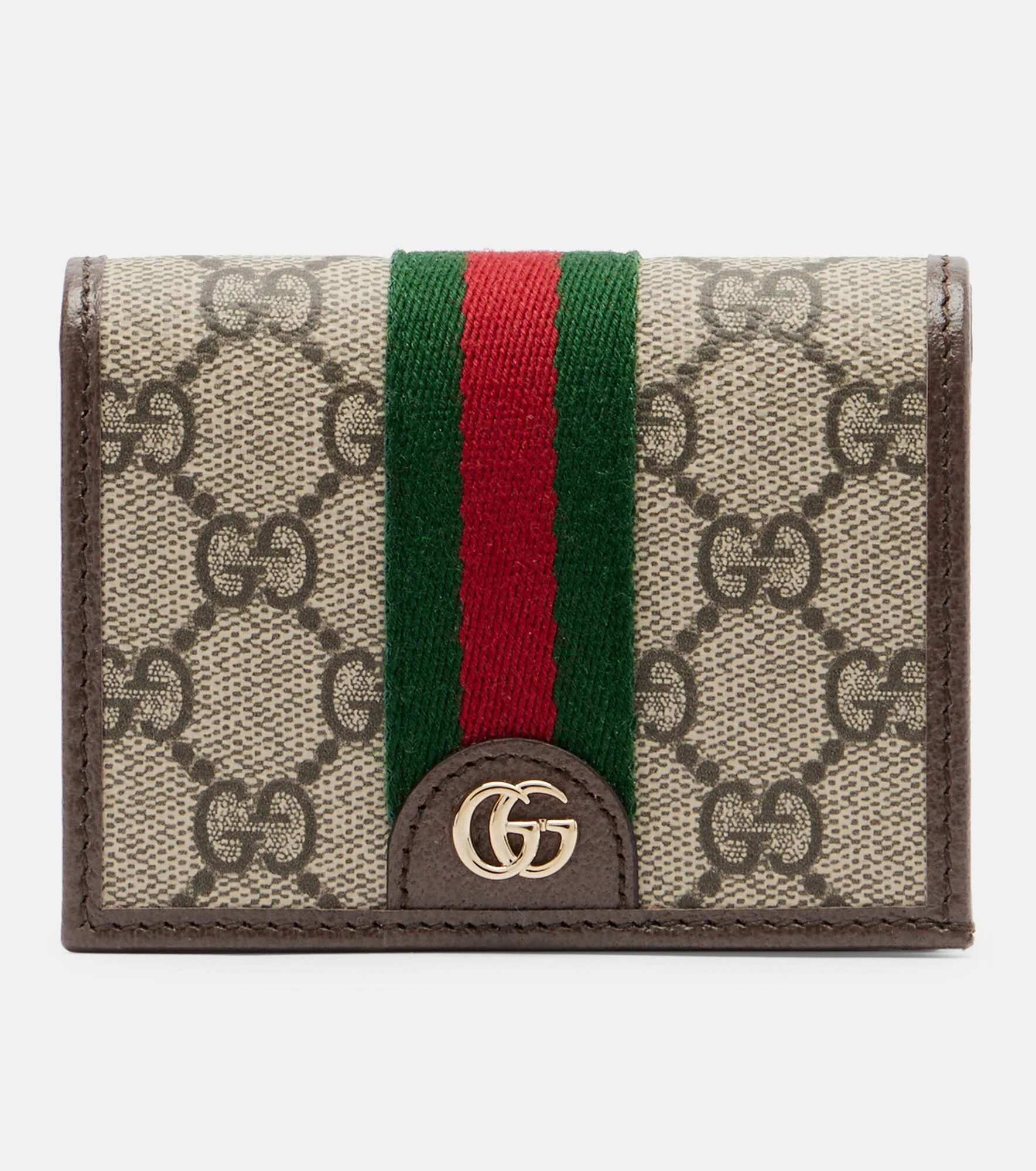 Debuted in 1951, Gucci's signature green and red Web stripe was inspired by equestrian saddle straps. The motif takes centre stage in this Ophidia wallet, crafted from GG coated fabric and finished with soft leather trims. Product Details - Material: canvas - Lining: leather - Made in Italy - Color: beige - Designer color name: Old B.Eb/N.Acero/Vrv - Item color: brown, beige - Hardware color: gold - Trim: leather - Closure: snap-buttoned fastening - Internal details: Card slots, internal zipped pouch, bill slot - Includes: dust bag, box - Item number: P01139801 Size & Fit - Height 8cm-3" - Width 11cm-4.5"
