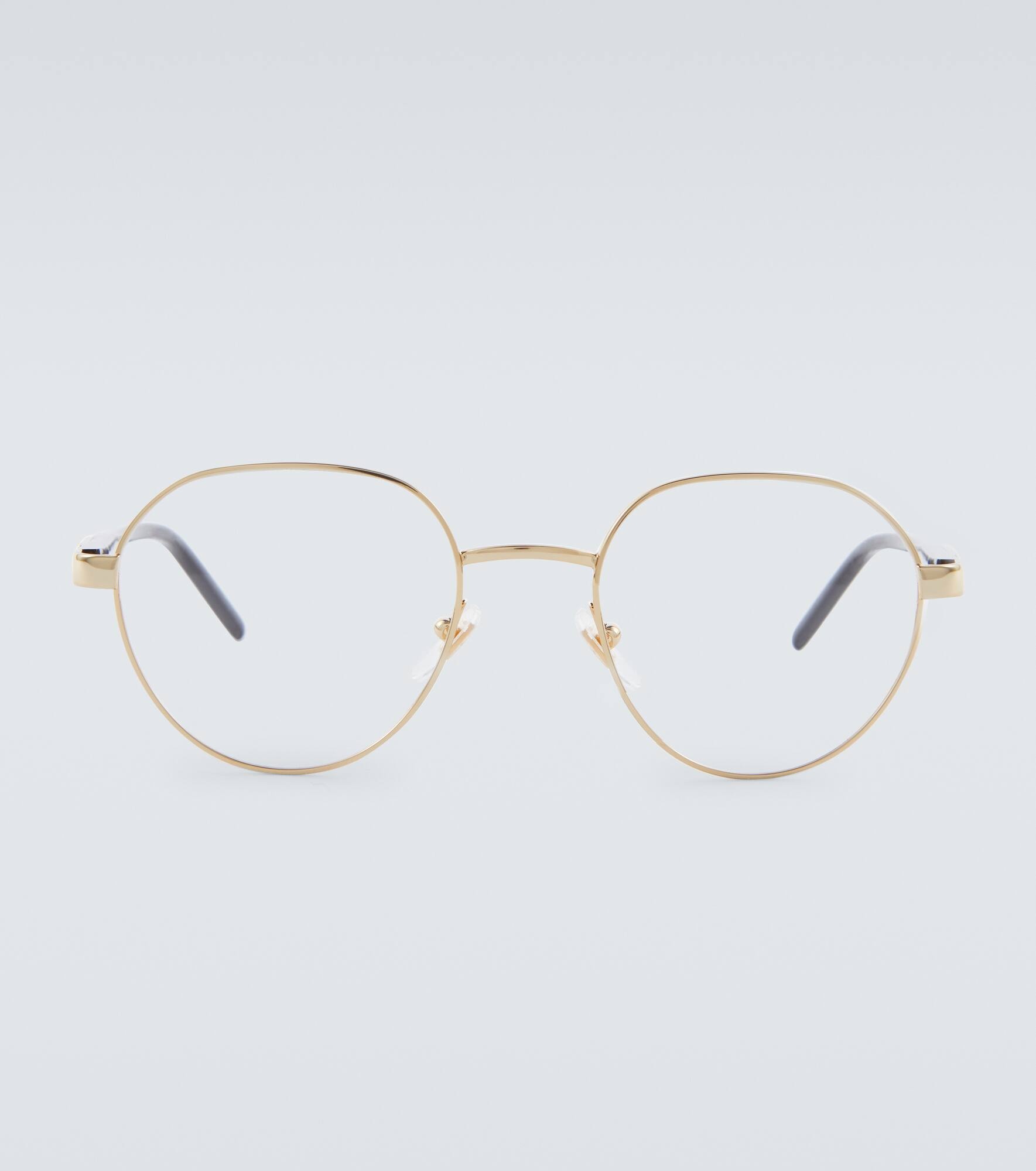Gucci takes a sleek approach to a retro '80s shape with these optical frames. Fusing oval rims and contrast-color temples, these metal glasses are minimalist and timeless. Product Details - Frame color: black, gold - Frame material: acetate, metal - Lens color: transparent - comes with cleaning cloth - The color of the case may vary, comes in a hard case - Made in Italy - Item number: P00689110 Size & Fit - Lens width: 51mm-2" - Bridge size: 20mm-0.8" - Earpiece length: 145mm-5.7"