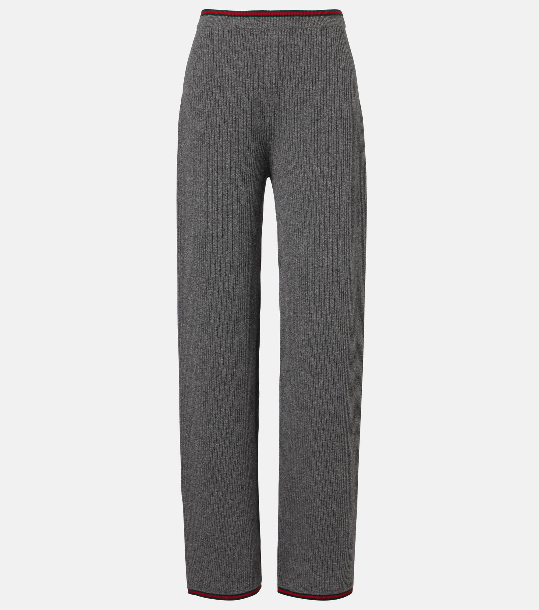 These Gucci pants combine effortless comfort with refined elegance. Expertly crafted in Italy from a soft wool-blend ribbed knit, this pair is finished with the signature Web Stripe at the elasticated waistband and cuffs for a matching style. Product Details - Material: 89% wool, 10% polyamide, 1% elastane - Care instructions: hand wash - Made in Italy - Designer color name: Dusty Dark Grey/Mc - Item color: gray - Elasticated waistband - Item number: P01052723 Size & Fit - True to size - Stretchy fabric - Wide-leg - High-waisted - Height of model is 175cm-69" and wears a size XS
