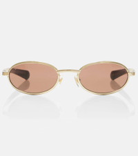 Look to Gucci for expertly designed sunglasses with modern appeal. This pair boasts oval lenses and metal temples that are complete with subtle logo-embossed details. Product Details - Frame material: metal - Frame color: gold - Lens filter category 2 - Lens color: brown - Made in Italy - Includes: case, cleaning cloth - The color of the case may vary - Item number: P01100290 Size & Fit - Lens width: 53mm-2.1" - Bridge size: 21mm-0.85" - Earpiece length: 135mm-5.3"