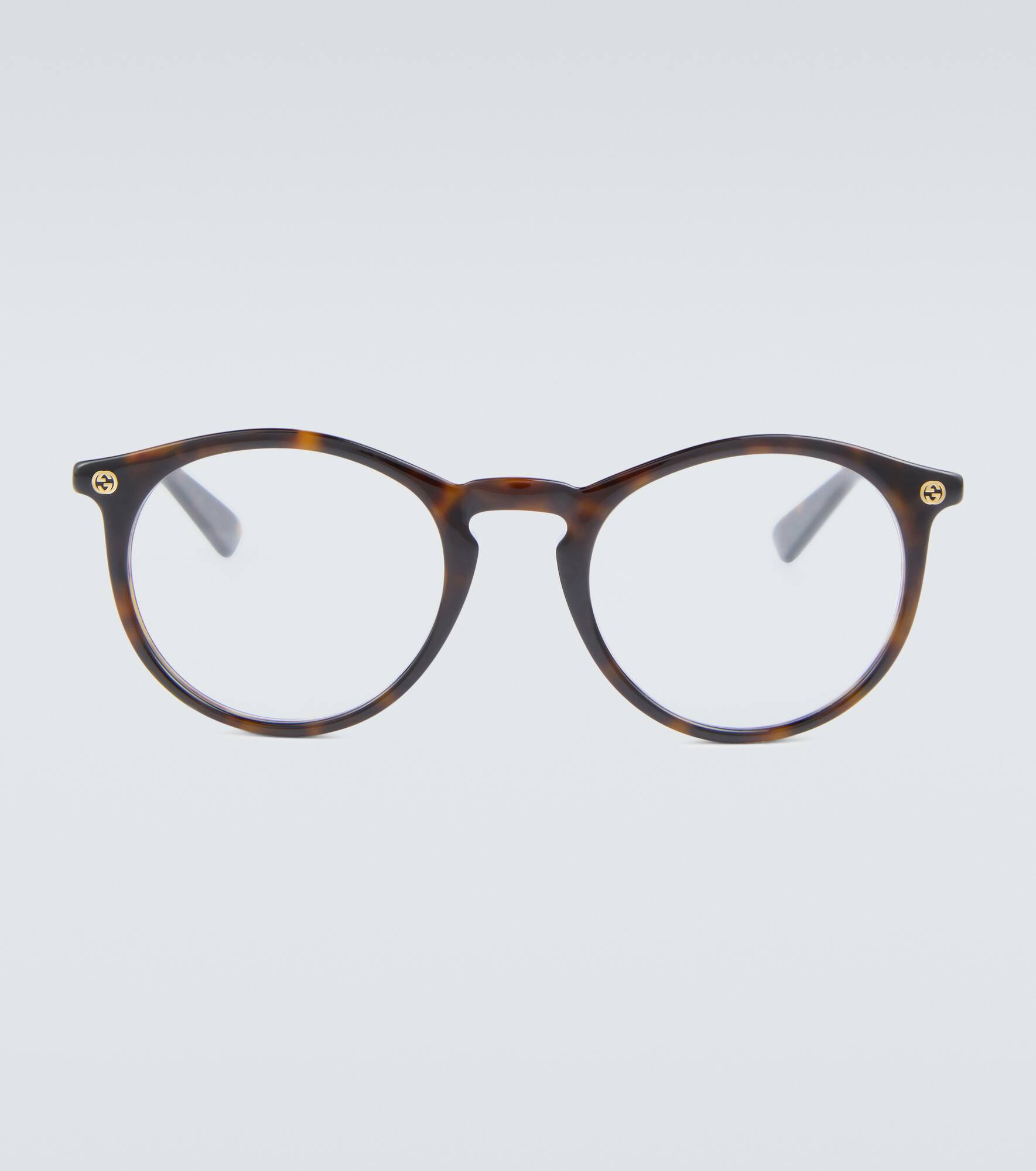 These round-frame glasses are made from acetate with an all-over tortoiseshell design. Gucci finishes the end pieces with its gold-toned Interlocking G logo. This style comes in a protective case, the color of which may vary. Product Details - Frame material: acetate - comes with cleaning cloth - The color of the case may vary, comes in a hard case - Made in Italy - Item number: P00689074 Size & Fit - Lens width: 49mm-1.95" - Bridge size: 21mm-0.85" - Earpiece length: 145mm-5.7"