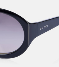 These round Gucci sunglasses blend retro nostalgia with modern style. Their oversized lenses and curved frames offer a bold vintage look, while the simple logo lettering keeps the details feeling fresh and sleek. Product Details - Frame material: acetate - Frame color: black - Lens filter category 3 - Lens color: grey - Made in Italy - Includes: logo-embossed case, cleaning cloth - Lens type: gradient lenses - The color of the case may vary - Designer color name: Black-Black-Grey - Item number: P01042880 Size & Fit - Lens width: 62mm-2.45" - Bridge size: 23mm-0.9" - Earpiece length: 125mm-4.9"