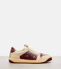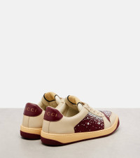Gucci's Screener sneakers are named after a defensive sports move and have been inspired by silhouettes from the '70s. The pair is crafted from panels of canvas and leather and features the signature GG pattern and crystal embellishments. Product Details - Upper: leather, canvas - Lining: leather - Sole: leather insole, rubber sole - Toe shape: round toe - Made in Italy - Includes: shoe box, dust bag, extra laces - Designer color name: DM/RA-RA/C/C/RA/OW/R - Item color: burgundy, beige - Closure: lace-up - Item number: P01096555 Size & Fit - True to size - European sizes - 2,5cm-1" platform (size EU 38)