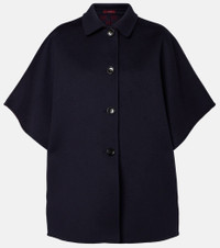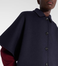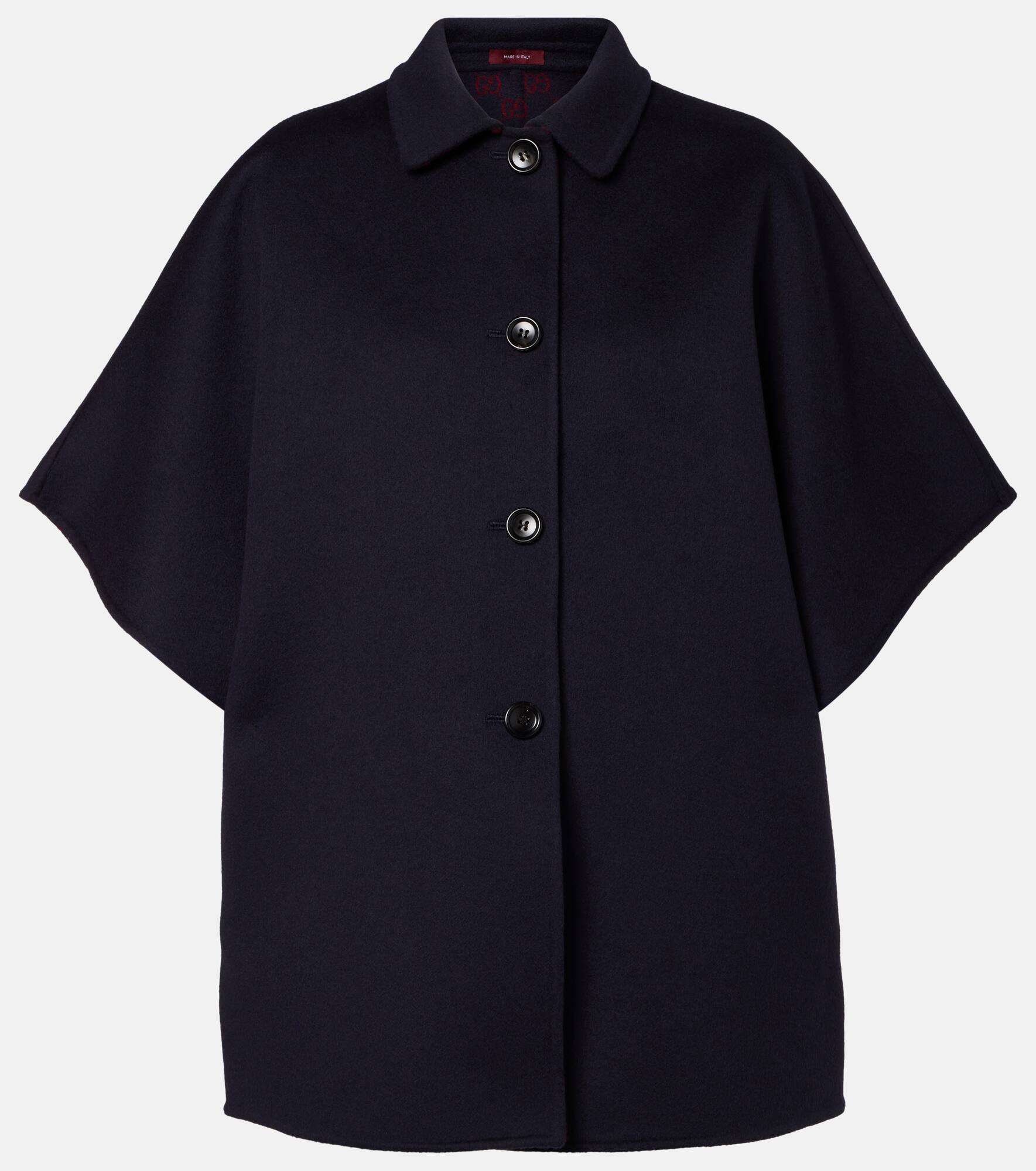 Gucci’s wool cape is made in Italy with a single-breasted front and side slit pockets. The tailored silhouette blends classic outerwear elements with the house’s refined approach to contemporary layering. Product Details - Material: 99% wool, 1% silk - Care instructions: dry clean - Made in Italy - Designer color name: Blue/Red - Item color: blue - Pocket lining: 100% cupro - Contains non-textile parts of animal origin - Closure: single-breasted - Pockets: side slit pockets - Item number: P01052637 Size & Fit - True to size - Oversized - Non-stretchy fabric - Falls below the hip - The model seen in the picture is 178cm-5'10" and wearing a size IT 40