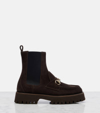 Add a sophisticated touch to your footwear collection with the Sylke ankle boots from Gucci. Expertly crafted from suede, this pair features rubber soles and is embellished with gold-toned Horsebits on the uppers. Product Details - Upper: leather (suede), fabric - Lining: leather - Sole: leather insole, rubber sole - Toe shape: round toe - Made in Italy - Includes: shoe box - Designer color name: T.Moro/Black - Item color: brown - Hardware color: gold - Item number: P01063089 Size & Fit - True to size - European sizes - 3,5cm-1.5" platform (size EU 38) - 4,5cm-2" wedge heel (size EU 38)