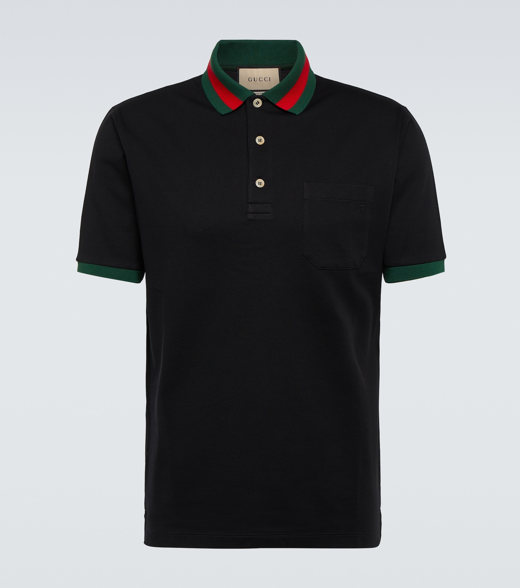 This polo shirt is from Gucci's Love Parade collection. It's made in Italy from a stretchy cotton-blend piqué that makes it breathable and suitable for summer days. Product Details - Material: 94% cotton, 6% elastane - Made in Italy - Care instructions: machine wash at 30 degrees - Designer color name: Black/Mix - Closure: partially buttoned front - Pockets: breast pocket - Item number: P00815714 Size & Fit - True to size - Straight fit - Mid-weight material - Falls to the hip - The model in the picture is 185cm-6'1" and wearing a size M
