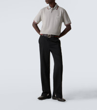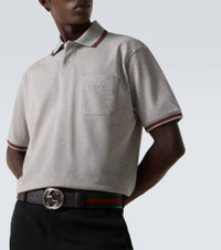 Debuted in 1951, Gucci's signature green and red Web stripe was inspired by equestrian saddle straps. Featured on the collar and sleeves, the feature elevates this cotton-blend polo shirt. Product Details - Material: 97% cotton, 3% elastane - Care instructions: machine wash at 30 degrees - Made in Italy - Designer color name: Grey Melange/Mix - Item color: gray - Trim: 100% cotton - Embroidery: 100% polyester - Contains non-textile parts of animal origin - Collar: polo collar - Closure: partially buttoned front - Side slits - Item number: P01050996 Size & Fit - True to size - Straight fit - Stretchy fabric - Falls to the hip - Height of model is 192cm-75.5" and wears a size L