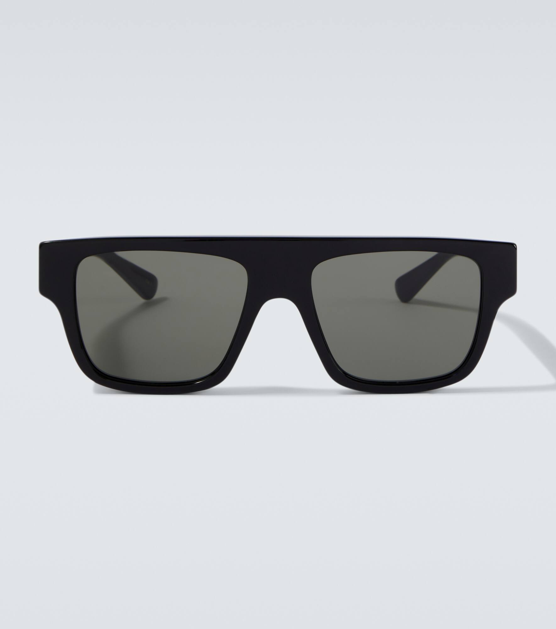 These flat-top sunglasses feature black acetate frames, dark gray tinted lenses, and a brand-iconic motif at the temples. Debuted in 1951, Gucci's signature green and red Web Stripe was inspired by equestrian saddle straps. Product Details - Frame material: acetate - Frame color: black - Lens filter category 3 - Lens color: grey - Made in Italy - Includes: case, cleaning cloth - The color of the case may vary - Item number: P01099577 Size & Fit - Lens width: 53mm-2.1" - Bridge size: 17mm-0.65" - Earpiece length: 145mm-5.7"
