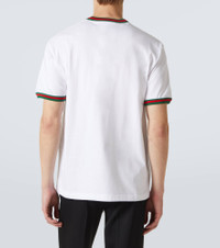 Crafted from soft cotton jersey, this T-shirt from Gucci features a relaxed silhouette with a crew neckline. The design is complete with the brand's iconic logo at the chest and Webstripe at the trims. Product Details - Material: 100% cotton - Care instructions: machine wash cold - Made in Italy - Designer color name: White/Mix - Item color: white - Item number: P01050923 Size & Fit - True to size - Dropped shoulders - Designed for a loose fit - Slightly stretchy fabric - Falls below the hip - Height of model is 190cm-75" and wears a size L