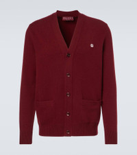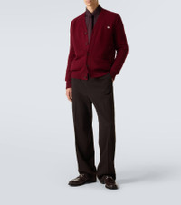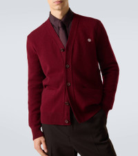 This Gucci cardigan is crafted in Italy from wool and cashmere, showcasing the label's refined craftsmanship. The piece features a V-neckline and the signature GG embroidery on the chest. Product Details - Material: 70% wool, 30% cashmere - Care instructions: dry clean - Made in Italy - Designer color name: Red Wine/Mix - Item color: burgundy - Embroidery: 100% polyester - Closure: buttoned front - Pockets: welt pockets - Item number: P01124222 Size & Fit - True to size - For a looser fit, we recommend taking one size up - Straight fit - Slightly stretchy fabric - Falls below the hip - Height of model is 189cm-74.5" and wears a size L