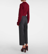 Add a touch of casual elegance to your office wardrobe with these straight-leg pants from Gucci. Crafted from soft wool, this pair features crisp leg creases, slant and back pockets, and a classic zip, hook, and button closure. Product Details - Material: 100% wool - Care instructions: dry clean - Made in Italy - Designer color name: Medium Grey - Item color: gray - Embroidery: 100% polyester - Pocket lining: 75% acetate, 25% silk - Contains non-textile parts of animal origin - Pockets: slant pockets, back pockets - Closure: zip, hook, and button fastening - Belt loops - Item number: P01052805 Size & Fit - True to size - Non-stretchy fabric - Straight leg - Sits low on the hips - The model seen in the picture is 178cm-5'10" and wearing a size IT 40