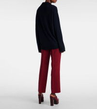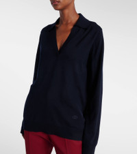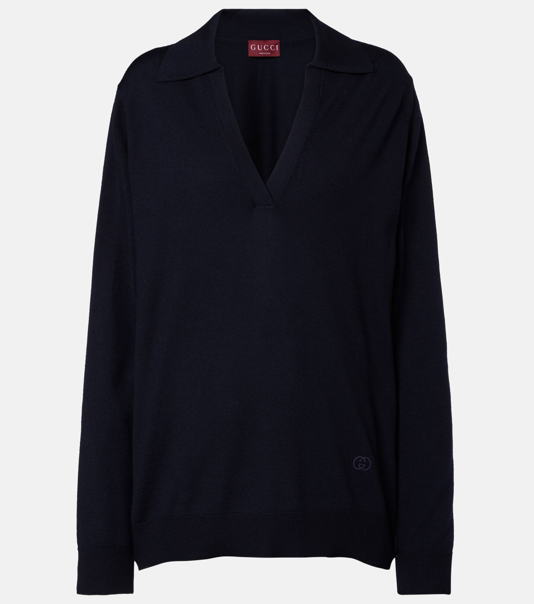 Gucci’s wool sweater is made in Italy, featuring a classic V-neckline and a soft, fine-knit texture. Ribbed cuffs and hem provide subtle structure, reinforcing the house’s commitment to elevated everyday essentials. Product Details - Material: 100% wool - Care instructions: dry clean - Made in Italy - Designer color name: Navy/Mix - Item color: blue - Trim: 100% polyester - Collar: V-neck - Cuff: ribbed - Hem: ribbed - Item number: P01095291 Size & Fit - True to size - Dropped shoulders - Designed for a loose fit - Falls below the hip - The model seen in the picture is 178cm-5'10" and wearing a size XS