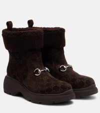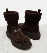 GG jacquard is a quintessentially Gucci fabric that's been part of the house's codes since the early '70s. The Yaga ankle boots are crafted from the brand’s suede iteration of the iconic jacquard. Product Details - Upper: leather (suede) - Lining: wool - Sole: fabric insole, rubber sole - Toe shape: round toe - Made in Italy - Includes: dust bag, shoe box - Designer color name: T. Moro/T. Moro/T. Moro - Item color: brown - Hardware color: antique silver - Trim: wool - Item number: P01063098 Size & Fit - Fits slightly small to size - we recommend trying a half size larger - Narrow fit due to lining - European sizes - 3,5cm-1.5" platform (size EU 38) - 6,5cm-2.5" wedge heel (size EU 38)